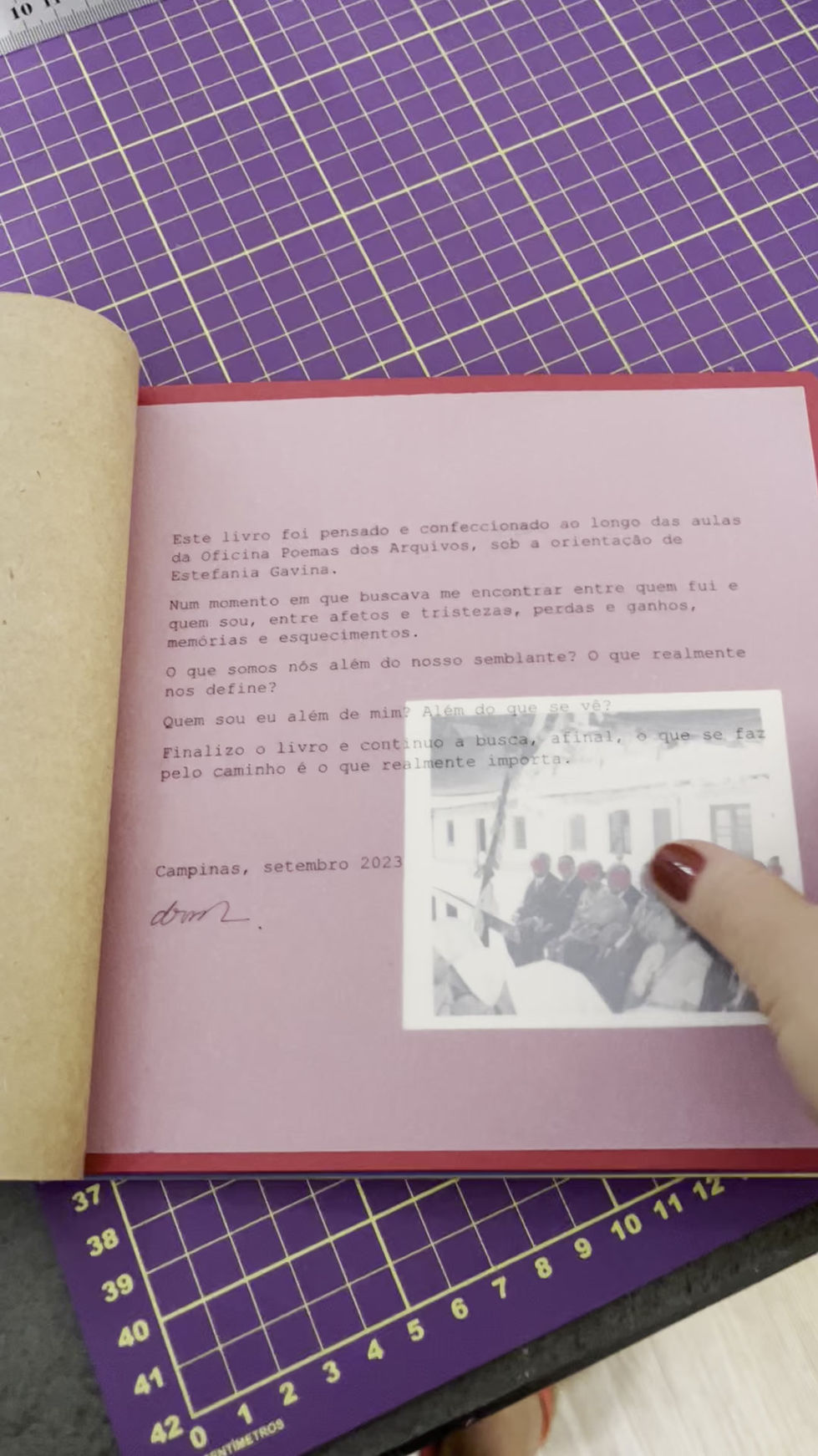 Os livros foram pensados e confeccionados ao longo das aulas da oficina “Poemas dos Arquivos”. Naquele momento, buscava me encontrar entre quem fui e quem era ali, entre afetos e tristezas, perdas e ganhos, memórias e esquecimentos.